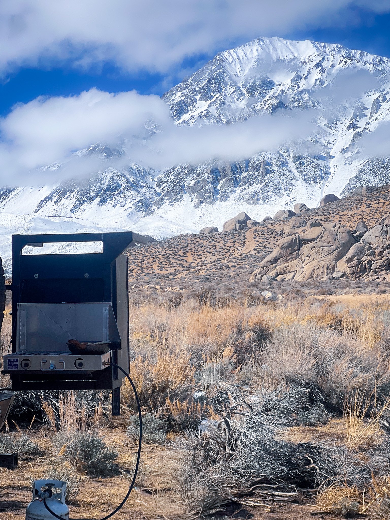 A quiet moment to connect at a secluded hot springs starts the day. A morning campfire adds comfort as the alpine glow of sunrise envelops the Sierra. You two set fresh ski tracks into the backcountry, saying vows to each other on the solitude of a summit before descending a steep line. An afternoon of light bouldering amidst the infamous Buttermilk boulders serves as a bookmark to an epic day.